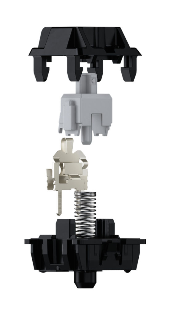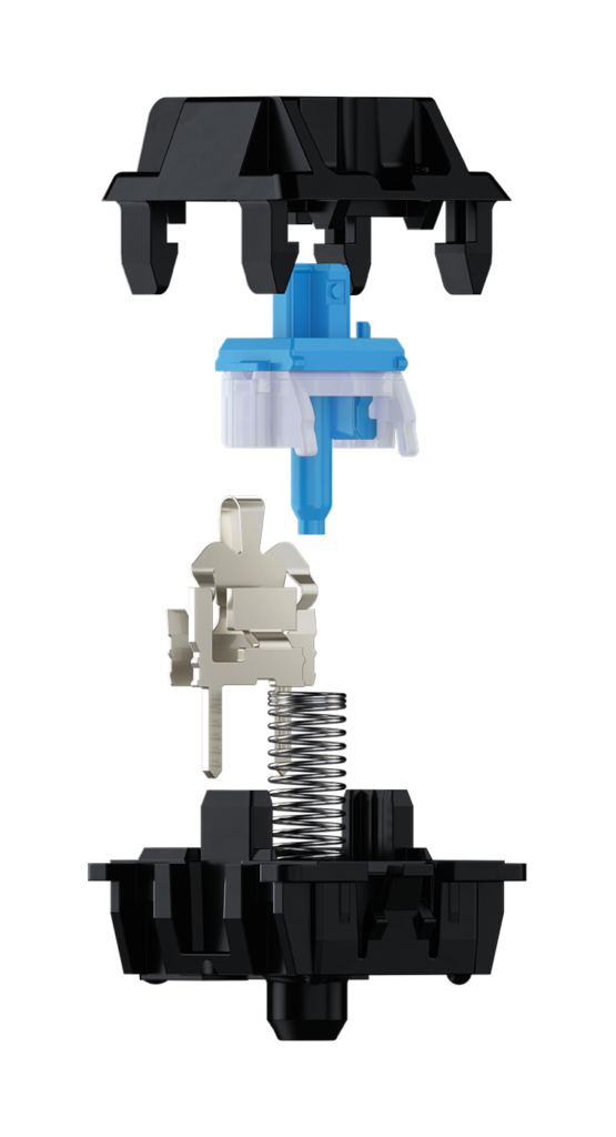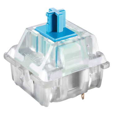 The characteristic of this tactile switch is featured by tactile and audible feedback. Thanks to the striking "click", the CHERRY MX Blue not only provides noticeable, but also acoustic feedback. The switch with the CHERRY MX click technology is thus establishes itself as a courageous choice.