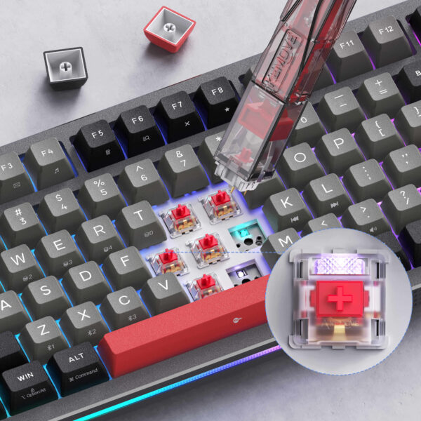 You can switch any 3-pin and 5-pin mechanical switches without soldering. Just plug in the switch you want and you can get the exact feel and sound of typing you want with your new mechanical switches.