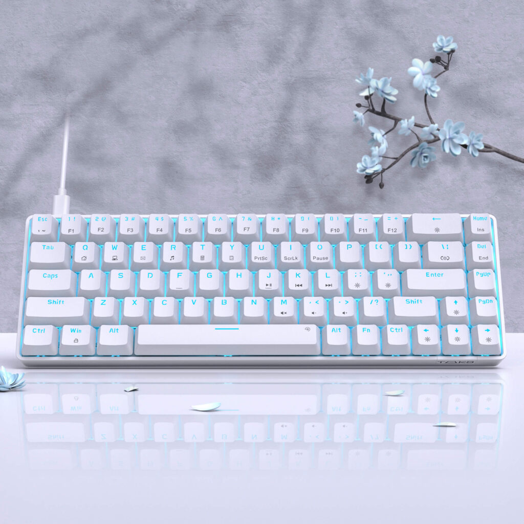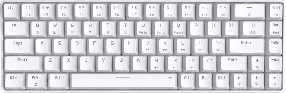 Sophisticated design in classic black and white. The design was inspired by butterflies, which led to the creation of Kemove’s first ultra-thin 68-key keyboard. The independently encircled light strip is integrated. With Five sets of independent light strip lighting effects and 19 keyboard RGB lighting effects, K68 will create a rich visual feast for you.