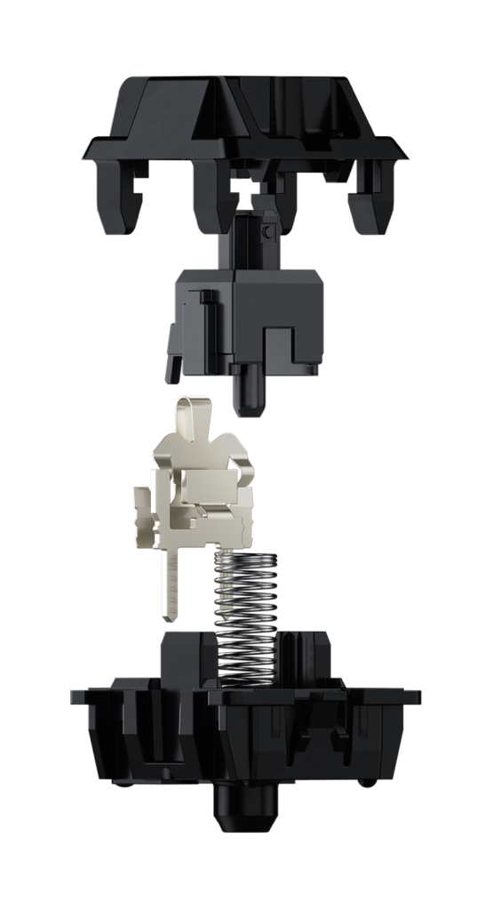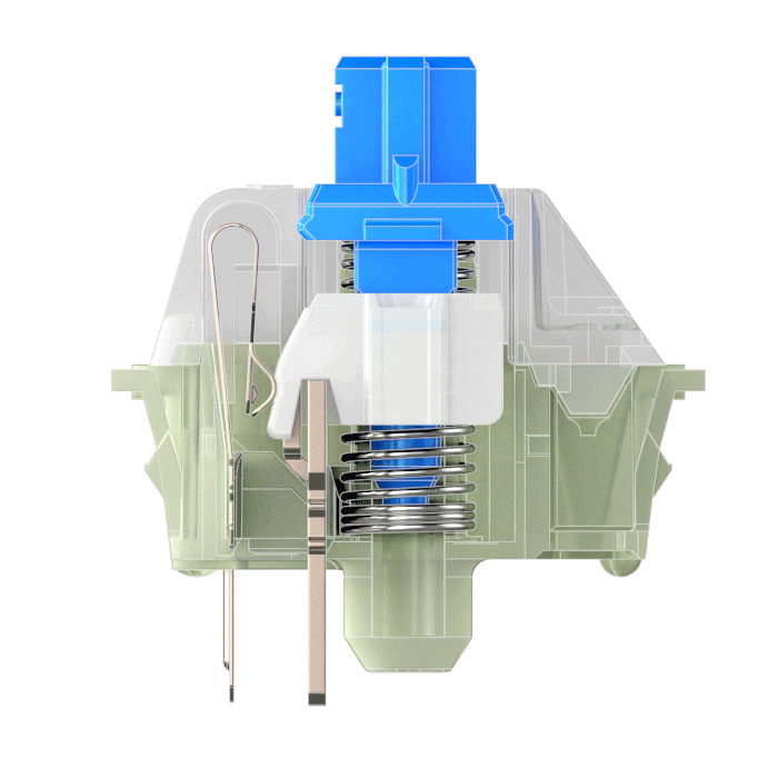 The characteristic of this tactile switch is featured by tactile and audible feedback. Thanks to the striking "click", the CHERRY MX Blue not only provides noticeable, but also acoustic feedback. The switch with the CHERRY MX click technology is thus establishes itself as a courageous choice.