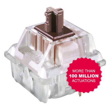 The characteristic of this tactile switch is characterized by a noticeable feedback. The noiseless guidance of the CHERRY MX Brown trains the sure instinct and helps to act tactically and strategically.