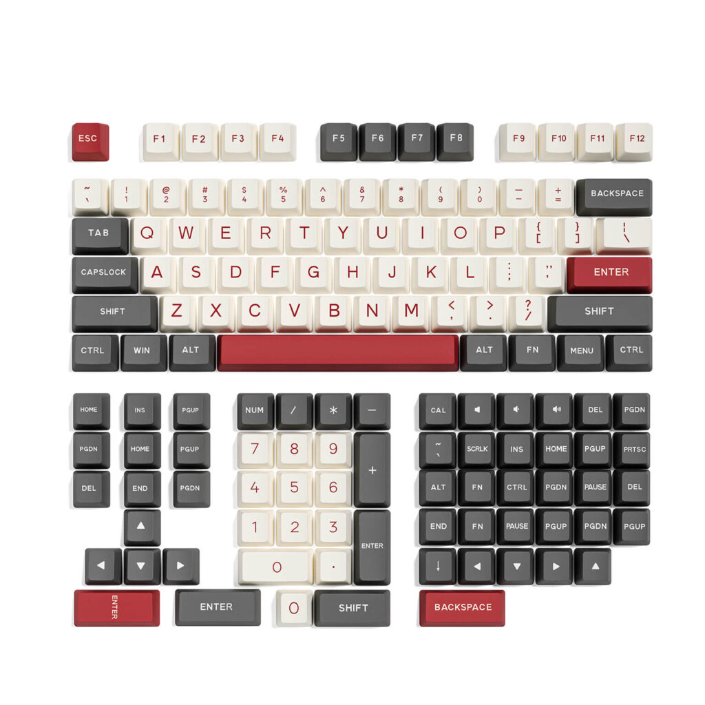 Product Features: The Emberstone Keycaps are a set of uniquely colored keycaps, featuring a combination of bean red, charcoal gray, and white, creating a distinctive contrast of flame and stone. Each keycap is crafted from high-quality materials to ensure durability and comfort. These keycaps are meticulously designed and manufactured using advanced techniques, ensuring clear patterns and resistance to wear and fading.